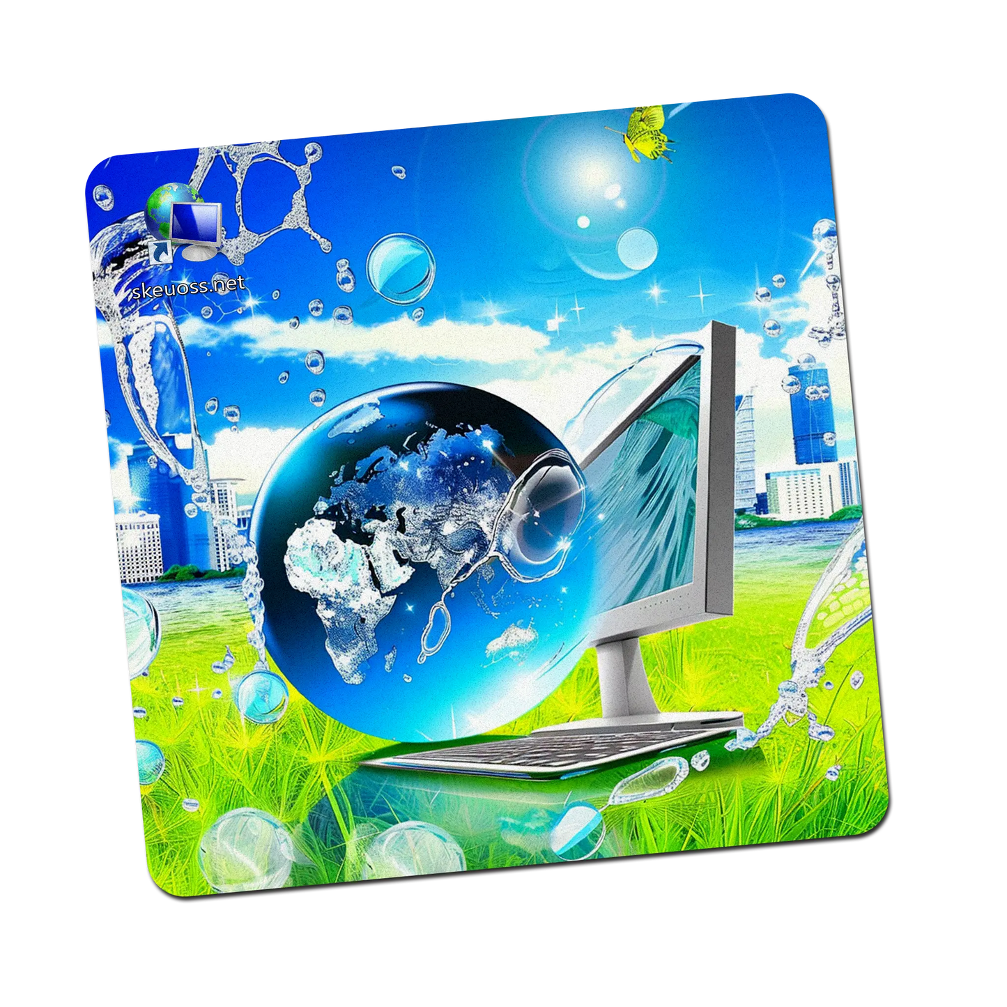 Introducing the Skeuoss Design 364 Mouse Pad, a perfect blend of functionality and style for your workspace. Inspired by the vibrant and dynamic Frutiger Aero aesthetic, this mouse pad is not just a tool, but a piece of art that brings the essence of technology and nature right to your desk.