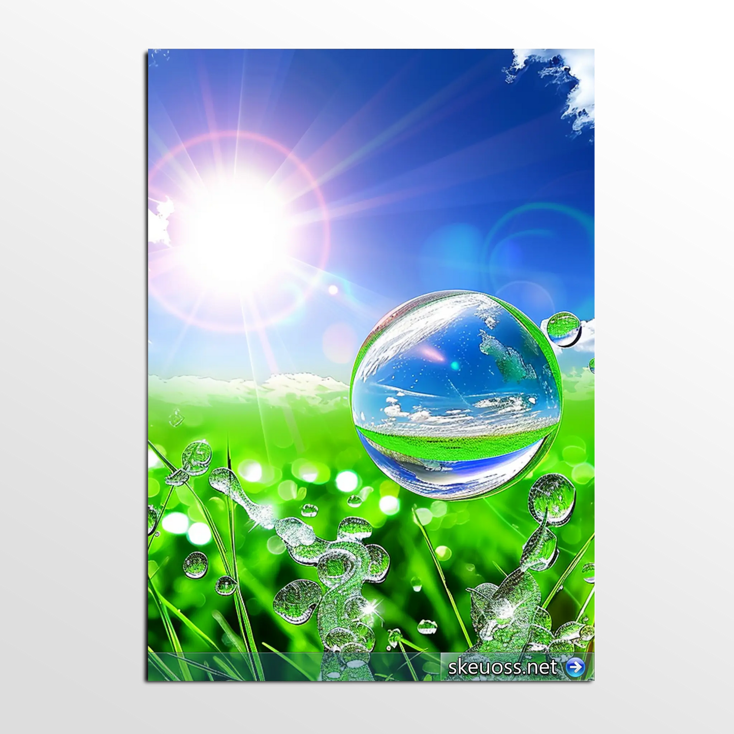 - Eco-Friendly Theme: Central to the design is a large, transparent bubble reflecting a pristine earth and sky scene. This symbolizes a deep appreciation for nature and purity, echoing an eco-friendly message that resonates in today’s world.