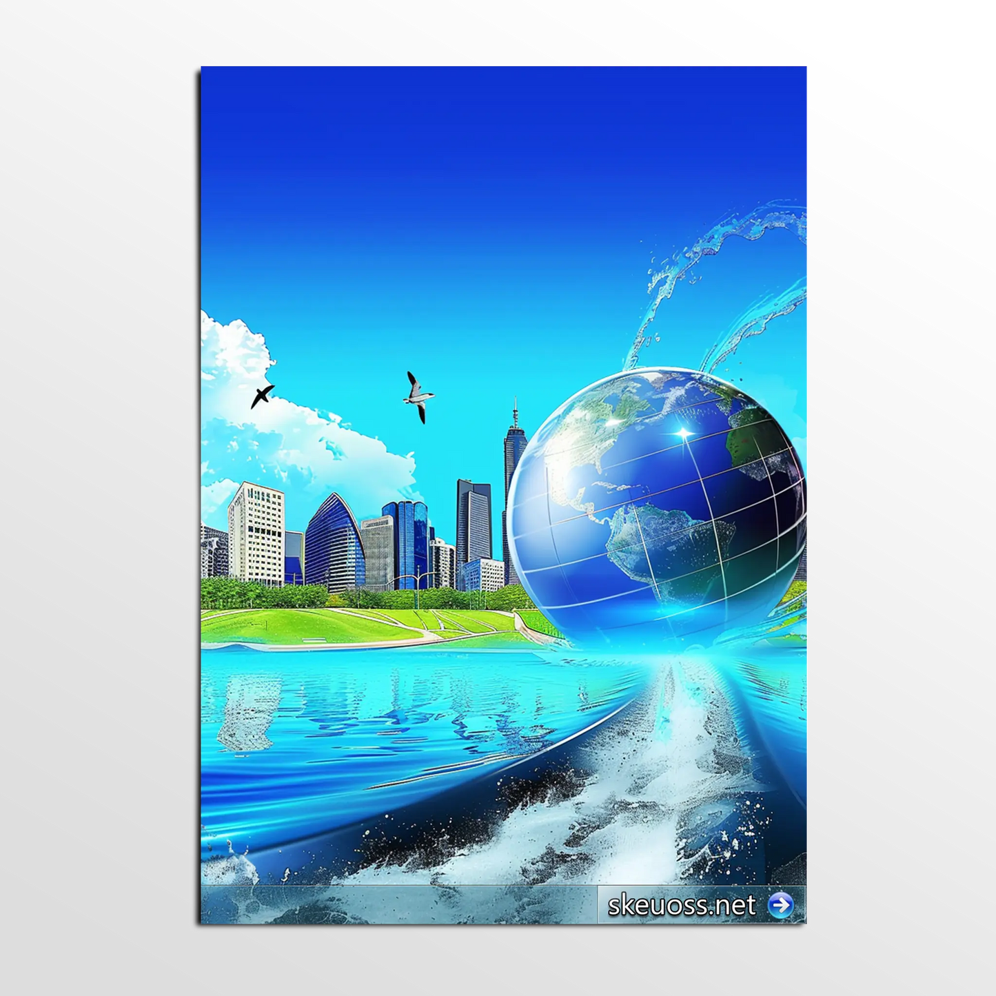 - Centerpiece Design: At the heart of the poster is a large, glossy globe, making a dramatic splash as it appears to land in a crystal-clear body of water. This striking image serves as a metaphor for the impactful presence one can have in their environment.