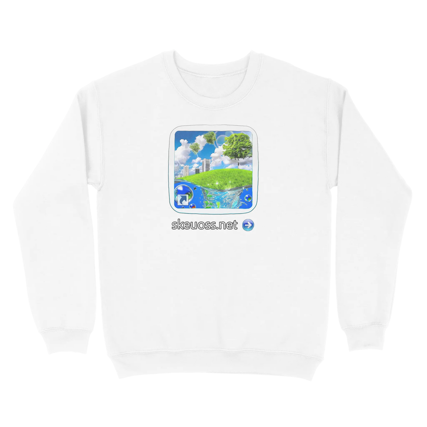 Introducing the latest addition to our 'User Login' collection, the Skeuoss Sweatshirt Model 'User 400'. This unique piece not only offers comfort but also brings a splash of nostalgia with its vibrant and surreal design inspired by the Frutiger Aero aesthetic. Perfect for those who appreciate a touch of early 2000s flair in their wardrobe, this sweatshirt is a must-have this season.